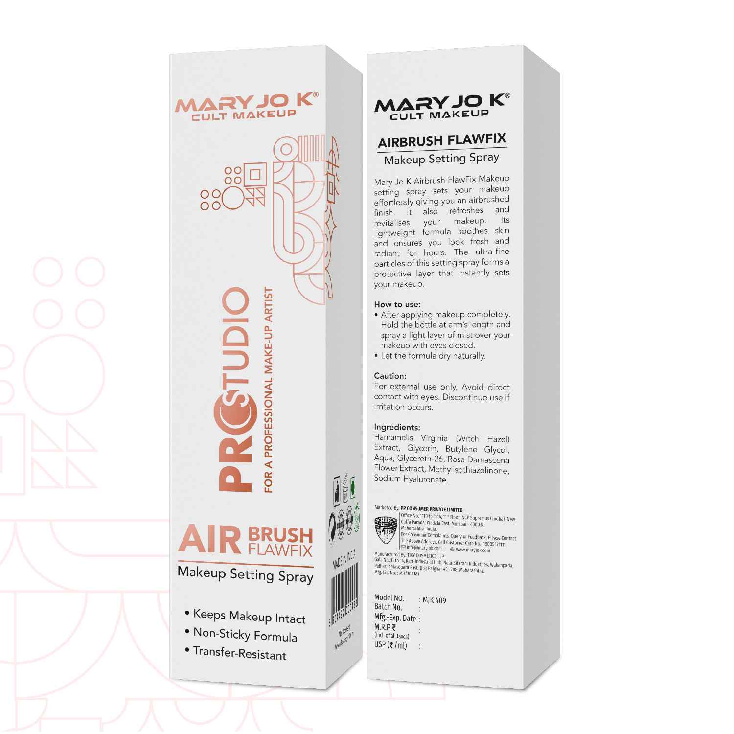 MARY JO K Airbrush FlawFix Makeup Setting Spray sets your makeup effortlessly giving you an airbrushed finish. It also refreshes and revitalises your makeup. Its lightweight formula soothes skin and ensures you look fresh and radiant for hours. The ultra-fine particles of this settling spray forms a protective layer that instantly sets your makeup!