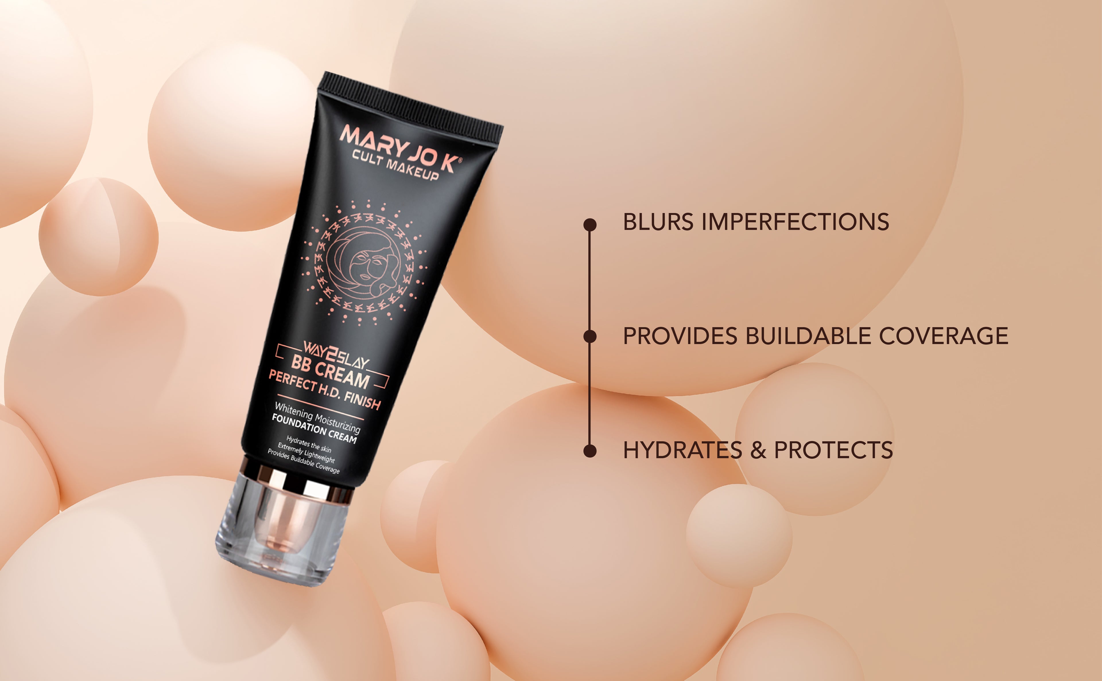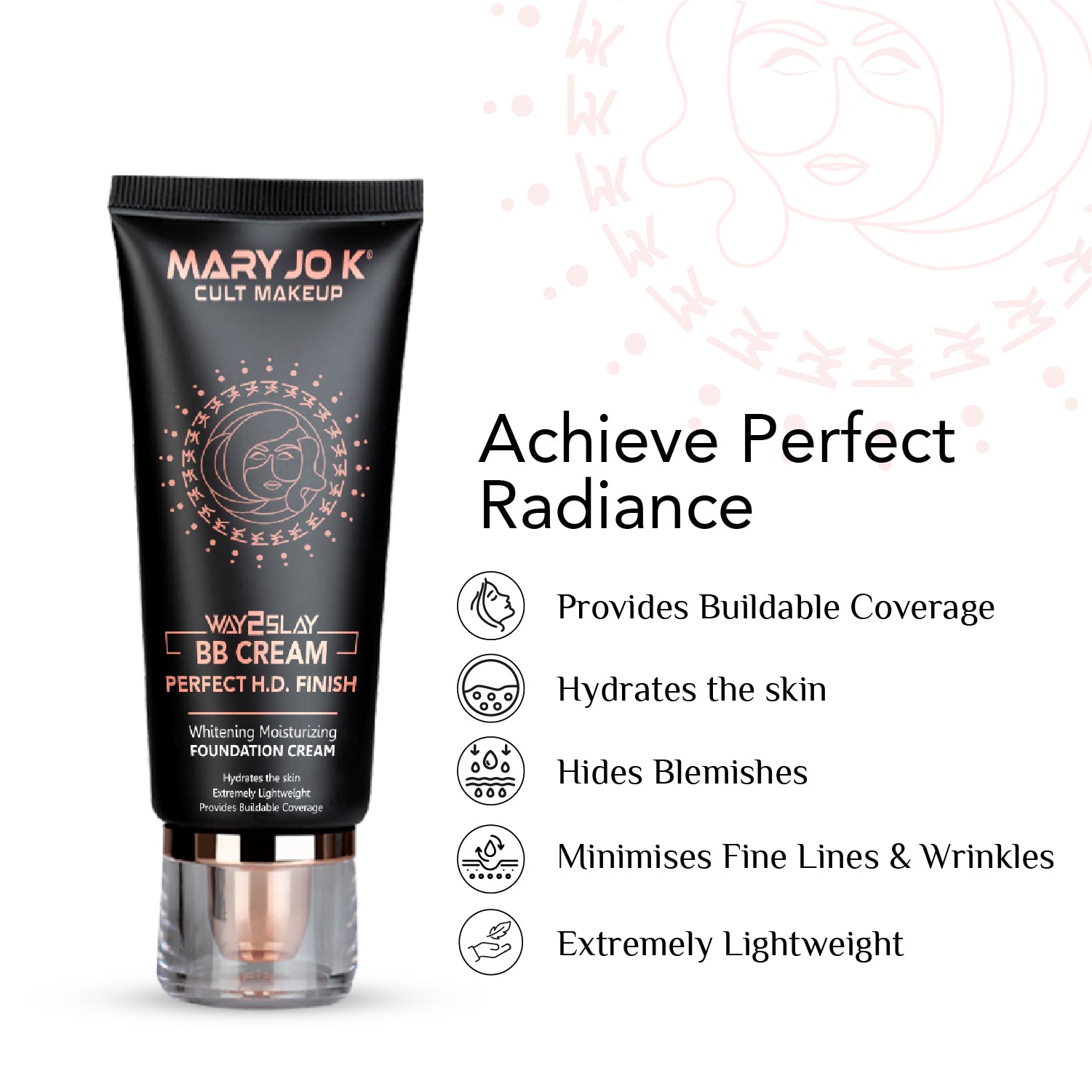 Mary Jo K’s BB Perfect Finish Foundation, is a lightweight formula that leaves your skin radiant & silky smooth. It is specially formulated with a blend of active ingredients to regenerate and repair skin, whilst reducing visible fine lines and wrinkles.
