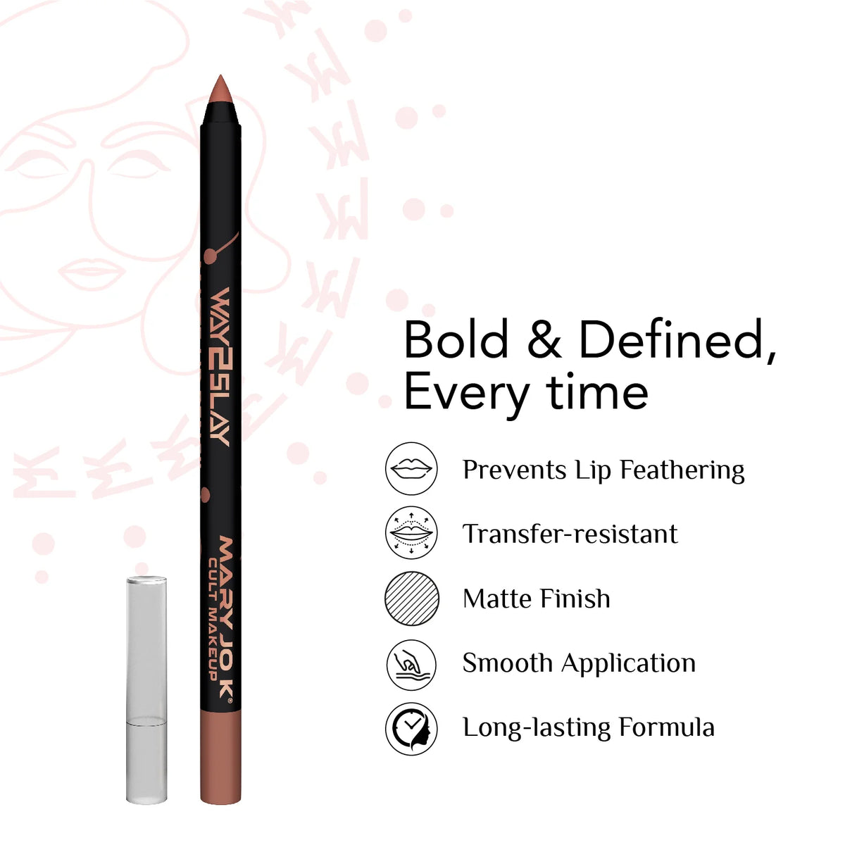 Get bold definition with Mary Jo K's Matte Lip Liner Pencil. The creamy matte formula combines the precision of a pencil with the long lasting power of a liquid lipstick delivering intense payoff and one stroke definition to your lips.
