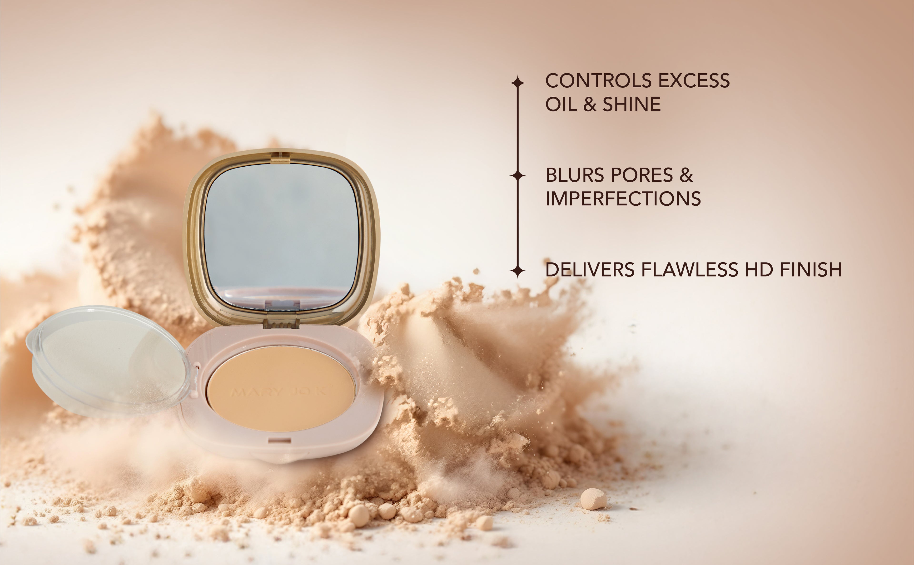 Mary Jo K Oil Control Compact Powder is a lightweight, mattifying powder that absorbs excess oil, minimises pores and sets your makeup for a flawless wear all day long. Its shine-free and provides an effortlessly perfect complexion with a H.D. Finish.